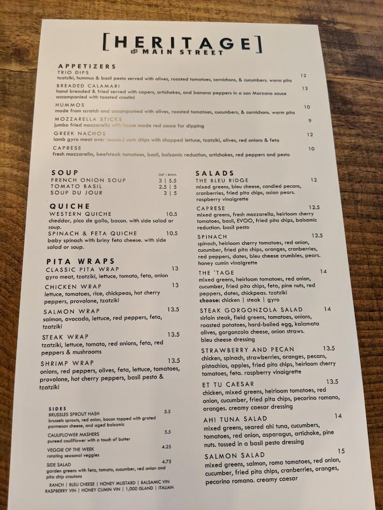 Heritage On Main offers a diverse menu, featuring an array of American classics. Diners can explore everything from vibrant salads to savory pasta dishes. Standout items include steak options that are renowned for their quality, making the menu feel upscale yet accessible.
